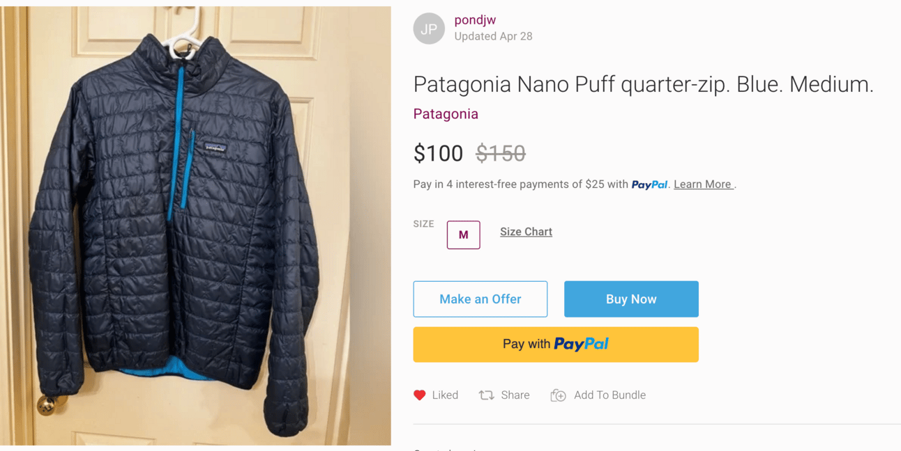 We’re a sucker for a lightweight spring jacket. Especially one as comfortable as the Nano Puff AND in a blue on blue colorway. For $100 (likely lower if you haggle), you could be sitting fireside with this bad boy by the weekend. Link HERE.