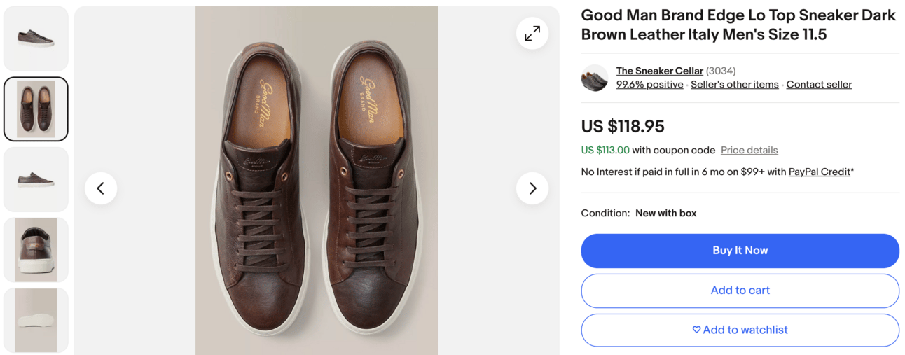 Good Man Brand makes a perfect sneaker for the office or a night out with their Edge Lo Top. You used to find them at Nordstrom no problem but the Edge is getting tougher to find these days as new releases take their spot. If you’re size 11.5, do yourself a favor and pickup these NEW IN BOX from ebay. They’re a smooth dark brown that will pair well with jeans and any color shirt.